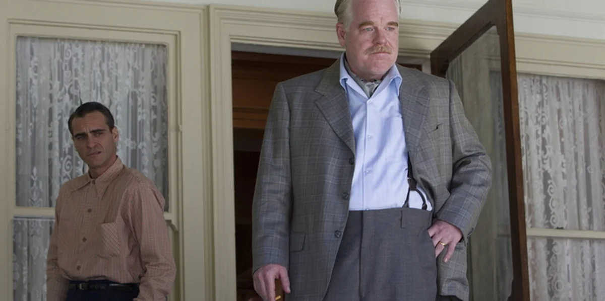 Angeführt wird sie von Lancaster Dodd (Philip Seymour Hoffman), der Hypnose, Zeitreise, Gesprächstherapie und Manipulation zu einer eigenen Mixtur verrührt und dies dann als Heilmethode gegen allerlei Gebrechen anpreist. Im Gegenzug verlangt er unbedingte Gefolgschaft. Fast wie ein Hund läuft ihm eines Tages Freddie Quell (Joacquin Phoenix) zu, ein Drifter, der im Zweiten Weltkrieg im Pazifik gekämpft hat.