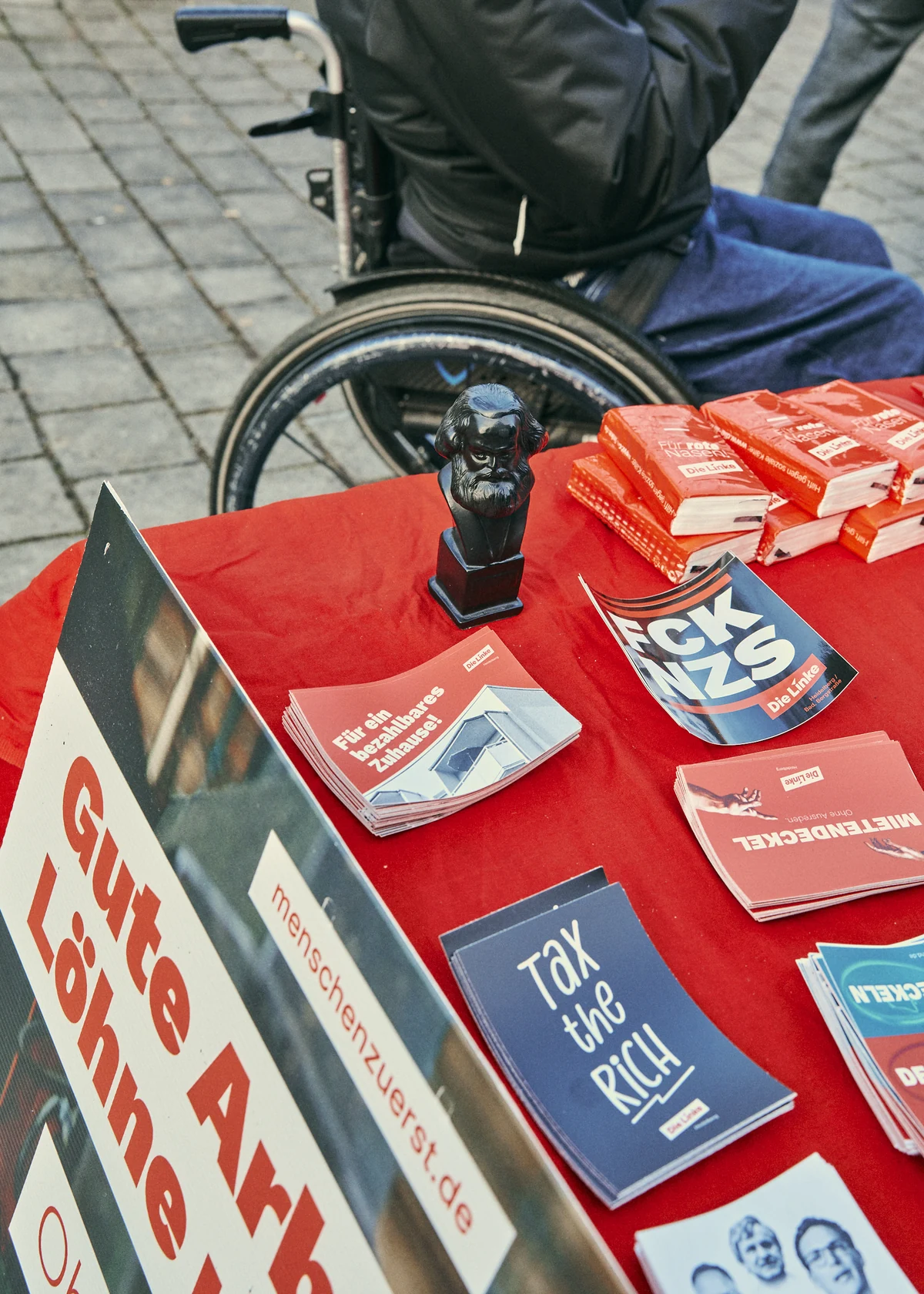 Theoretisch stehen auch andere Themen im Wahlprogramm, zum Beispiel, dass man Teile der Autoindustrie verstaatlichen wolle. Ob Bohnen diese Themen bewusst ausspart, weil es womöglich Wähler*innen, und sind sie noch so enttäuscht, abschreckt? Bohnen verneint. Trotzdem erwähnt sie das Wort in den zwei Tagen, die die taz sie beim Wahlkampf begleitet, nicht ein einziges Mal.
