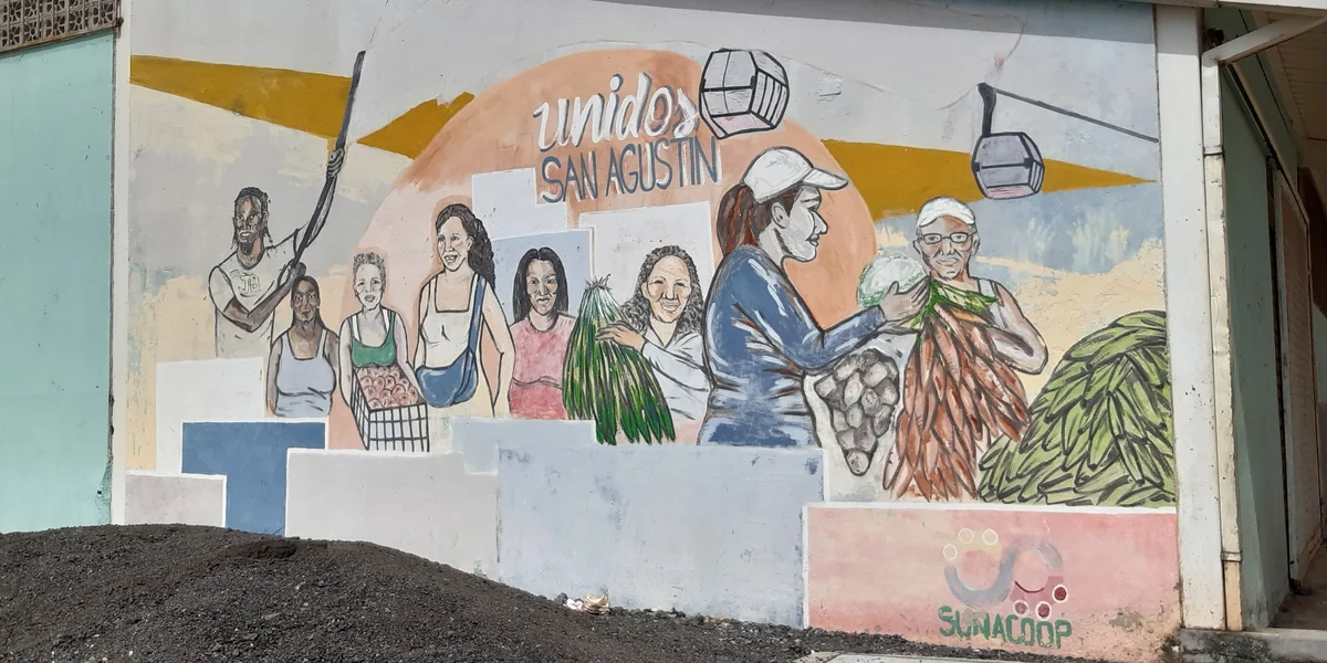 In einem Nebengebäude gab es bis vor einigen Jahren einen staatlichen Mercal-Supermarkt. Genauso wie ein Computerzentrum steht er mittlerweile leer. Die meisten Räumlichkeiten in dem Gebäude sind an Privatleute gegangen. Im vierten Stock verfügt die Kooperative Unidos San Agustín Convive über einen kleinen Versammlungsraum, der einige Nähmaschinen beherbergt. Aus dem Fenster hat man einen weiten Blick über das Viertel. Die Gondeln der Seilbahn schweben lautlos fast auf Höhe des Raumes. Von unten mischen sich Motorenlärm und Kindergeschrei.