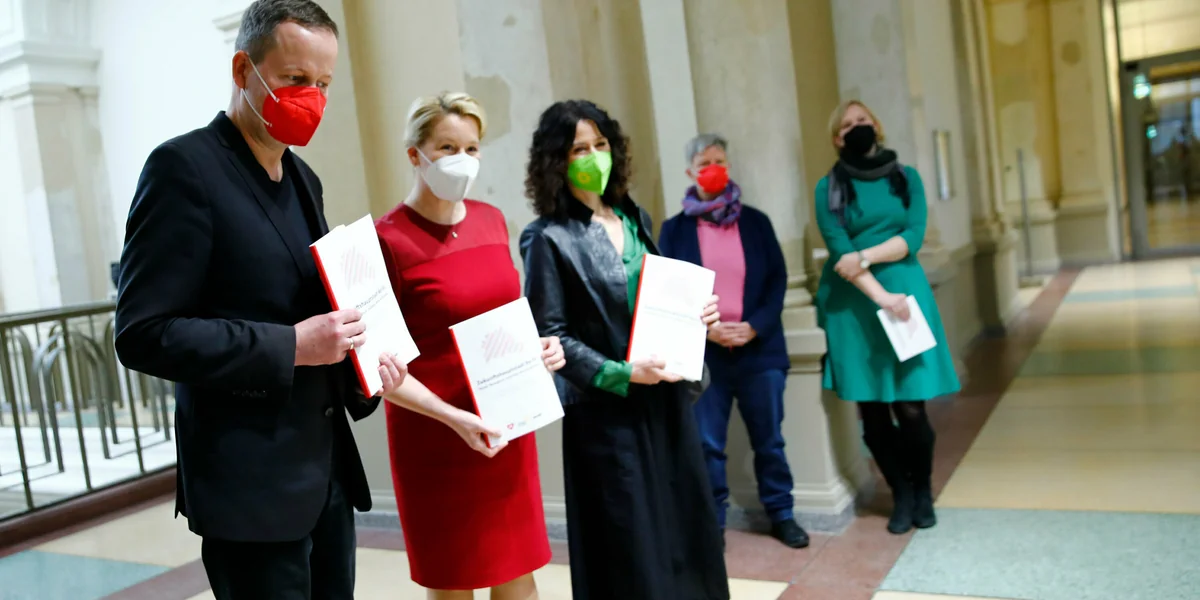 Ende November haben SPD, Grüne und Linke die Verhandlungen über eine Neuauflage ihres Bündnisses erfolgreich abgeschlossen. Der Koalitionsvertrag muss allerdings noch von einem Parteitag der Grünen am kommenden Sonntag sowie von den Mitgliedern der Linkspartei in einer Abstimmung abgesegnet werden. Die SPD hat auf einem Parteitag bereits mit sehr deutlicher Mehrheit dafür gestimmt.