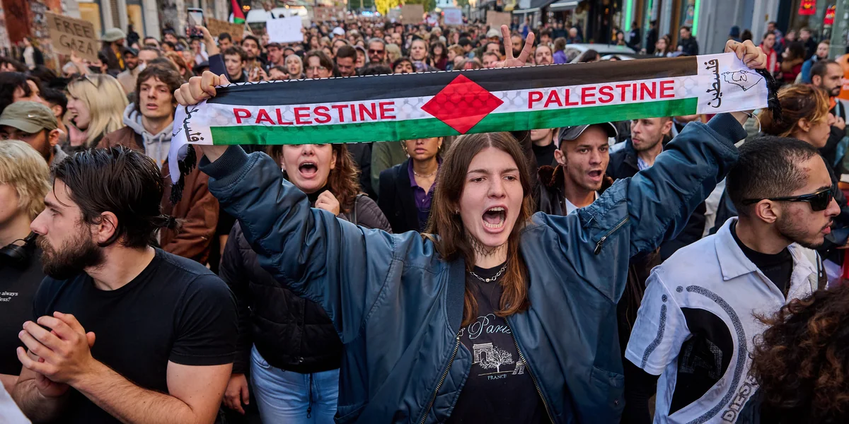 Zur Palästina-Demo am 20. Oktober unter dem Motto „Decolonize. Against Oppression globally“ rief unter anderem die Gruppe „Palästina Spricht“ auf. „Heute ist ein revolutionärer Tag, auf den wir stolz sein können“ – mit diesen Worten hatte die Gruppe den Hamas-Terror kommentiert. Einen Tag später verbreitete die Gruppe Bilder mit Gleitschirmfliegern. Hamas-Kämpfer waren so unter anderem zu einem Musikfestival gelangt, wo sie 260 Feiernde ermordeten.