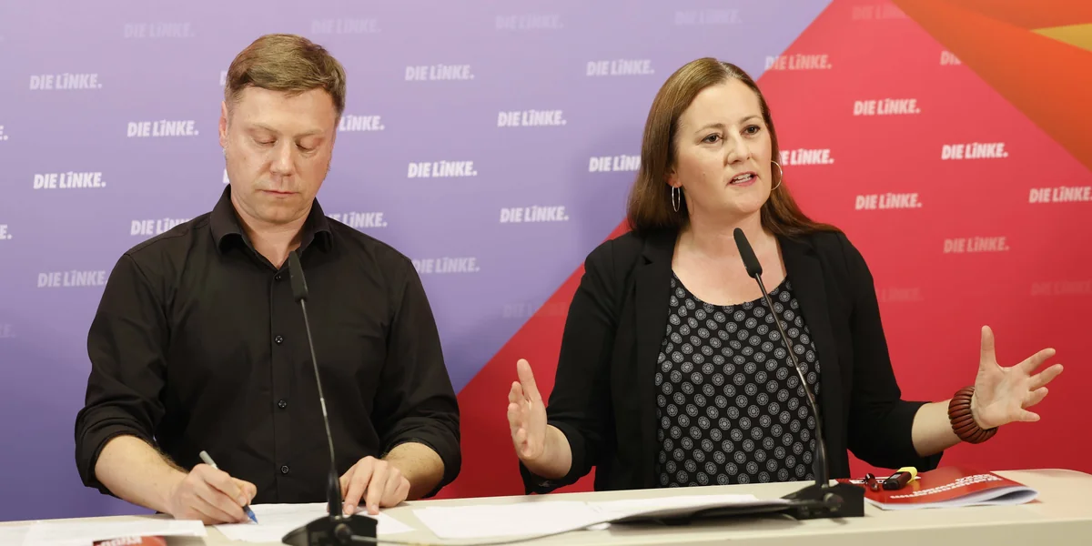 Zuvor hatten die beiden Linken-Vorsitzenden über eine halbe Stunde lang ausführlich das Programm ihrer Partei zur Europawahl referiert, dazu wurden mehrere dicht beschriebene Folien eingeblendet. Dieses Programm habe der Vorstand „einstimmig angenommen und verabschiedet“, betonte Schirdewan stolz. Die Zeit der Streitereien in der Linkspartei sei vorbei, so lautete die Botschaft.