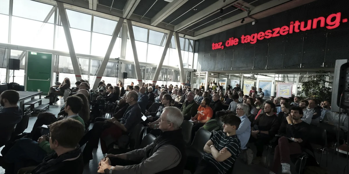 14.52 Uhr: Die Besucher*innen des taz lab 2019 haben verstanden, dass es drinnen nicht nur schöner als draußen in der Frühlingssonne ist, sondern ein Fluchtweg auch im taz-Haus ganz spießig ein Fluchtweg bleibt. 20 Minuten vor Veranstaltungsbeginn sind die Vortragsräume halb gefüllt. Auf dem Smartphone wird nochmal schnell ein Background-Check ueber den*die Referierende vorgenommen.