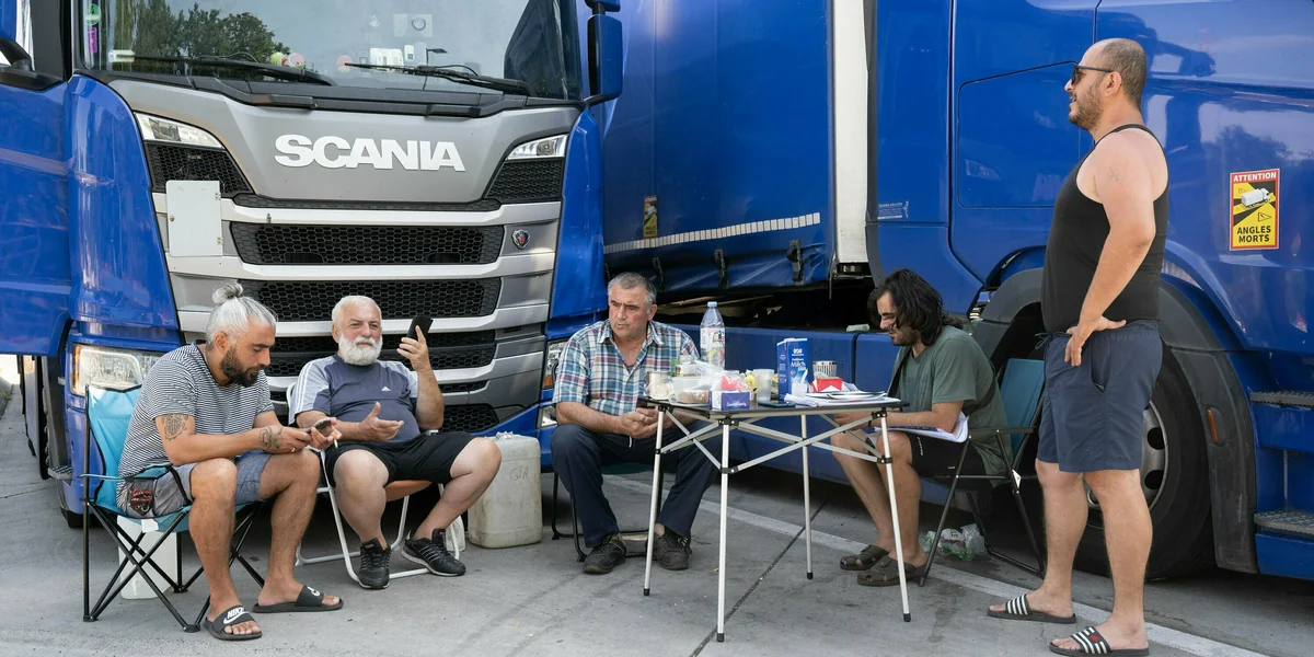 Dazu kommen sehr lange Arbeitstage, 10 bis 14 Stunden täglich, erzählen die Männer. Zu Hause waren sie alle seit Monaten nicht. „Meine Familie sehe ich nur über Videotelefonie“, sagt Tughushi und guckt gen Himmel. Für dieses wochenlange Leben im Fahrzeug ohne Familie und Freunde, dafür bekommen sie nach eigenen Angaben 1.800 bis 3.000 Euro im Monat. Oder eben nicht.