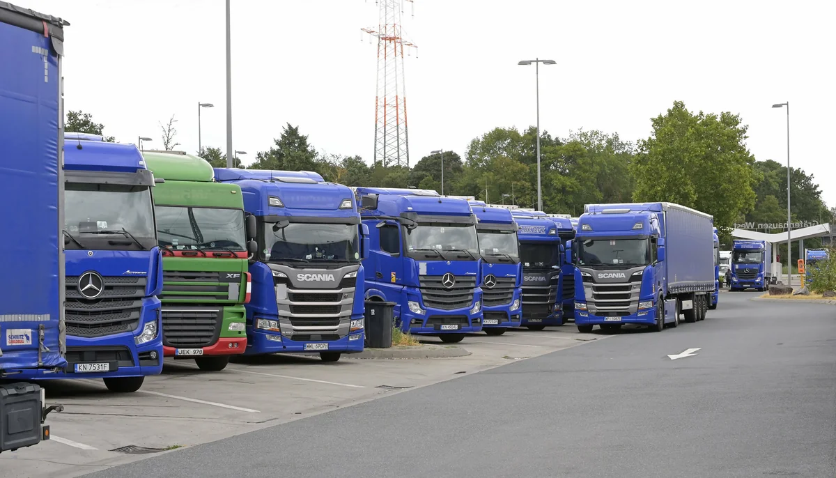 Stoßstange an Stoßstange, dreireihig geparkt, damit möglichst viele Platz finden. Auf der Autobahnraststätte Gräfenhausen-West an der A 5 zwischen Frankfurt am Main und Darmstadt steht derzeit ein blauer Lkw neben dem anderen. In den vergangenen zwei Wochen sind immer mehr hinzugekommen. Etwa 90 Wagen stehen mittlerweile auf dem Parkplatz, schätzt die Polizei. Gegenüber, in Gräfenhausen-Ost, sind es noch einmal etwa 50. Warum die Lkws hier stehen? Das kann jeder lesen, der von der Tankstelle zum Parkplatz will. Metergroß prangt da mit Klebeband geschrieben auf einem der Wagen: „Mazur Debtor. No money.“ Zu Deutsch: „Schuldner Mazur. Kein Geld.“