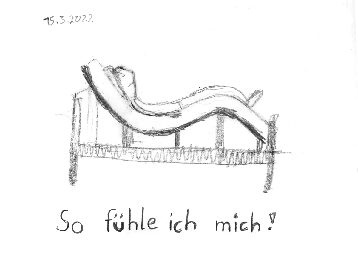 Auch mit unserer neuen Kinderärztin haben wir großes Glück, sie macht Hausbesuche und versucht Hilfe über die 130 Kilometer entfernte Post-Covid-Ambulanz zu bekommen. Aber auch dort will, kann oder darf kein ernsthafter Therapieversuch gestartet werden. Dabei weiß ich, dass man Medikamente ausprobieren könnte, auch wenn es noch keine zugelassenen Heilverfahren gibt. Off-Label-Use nennt sich das. Doch das traut sich keiner. Ich dränge, ich nerve, ich bettle, ich wirke hysterisch.Währenddessen verursacht Olivias Bettlägerigkeit immer neue gesundheitliche Probleme: verätzte Speiseröhre, Rücken- und Gelenkschmerzen, Verstopfung, Druckstellen.