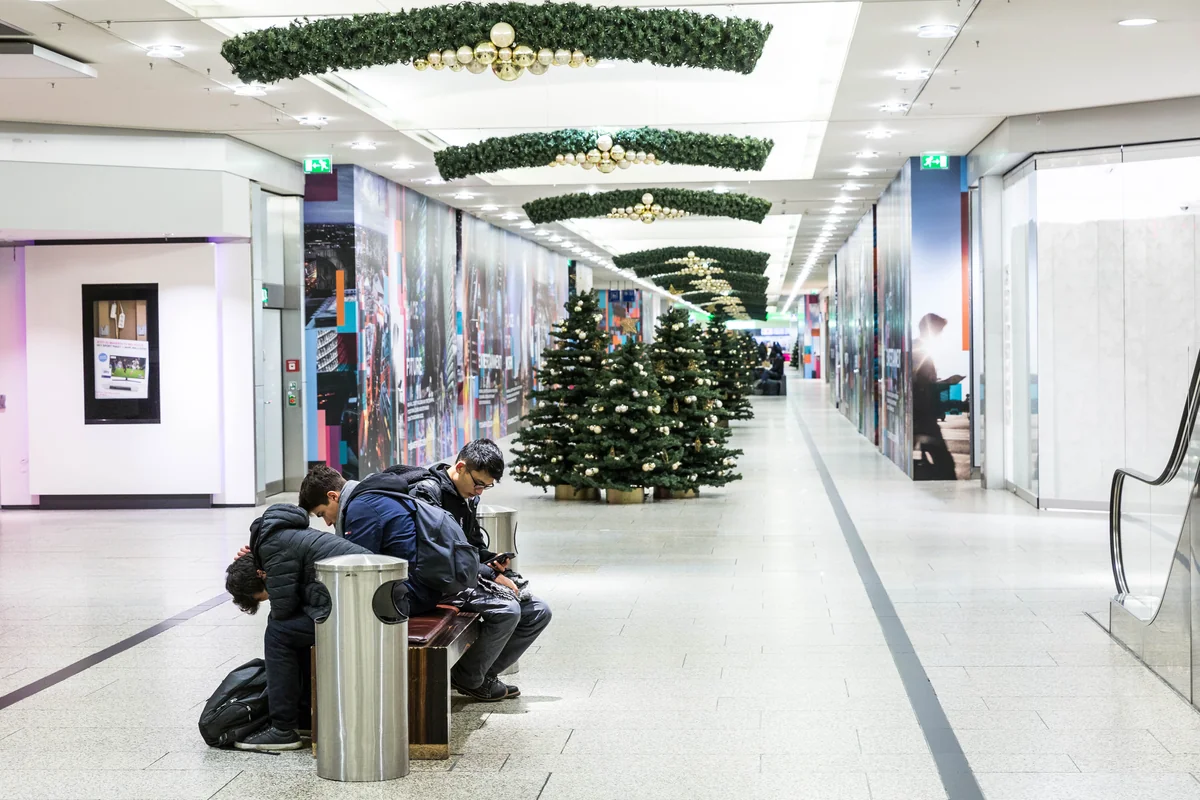G oldene Kugeln hängen in dunkelgrünen Plastiktannenbäumen, von der Decke baumeln sechszackige Sterne und lange Lichterketten. Doch selbst Menschen, die vorweihnachtlichen Shoppingtouren etwas abgewinnen können, dürften hier kaum auf ihre Kosten kommen. Nicht nur, dass die Lichterketten an diesem Donnerstagnachmittag ausgeschaltet sind und aus den Lautsprechern keine Musik erklingt: Die Mehrzahl der Geschäfte in den Potsdamer Platz Arkaden ist geschlossen.