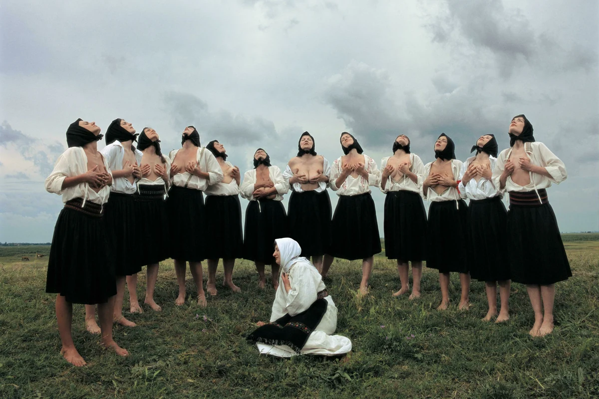 Schon im großen Lichthof des Gropius Baus, noch vor der eigentlichen Ausstellung, ist eins der Hauptwerke aus „Balkan Erotic Epic“ zu sehen: „Tito’s Funeral“, eine Bezugnahme auf die im Jahr 1980 öffentlich übertragene Beerdigung des jugoslawischen Staatspräsidenten und Partisanenführers, erstreckt sich über eine meterlange Projektionsfläche. Schwarz gekleidete Frauen schlagen sich in der Videoarbeit rhythmisch auf die Brust. In die Geräusche der Körper mischt sich diffuses Klagen, kaum merklich dreht sich die Kamera in endlosem Loop. Inmitten der Masse findet sich auch die Künstlerin selbst.