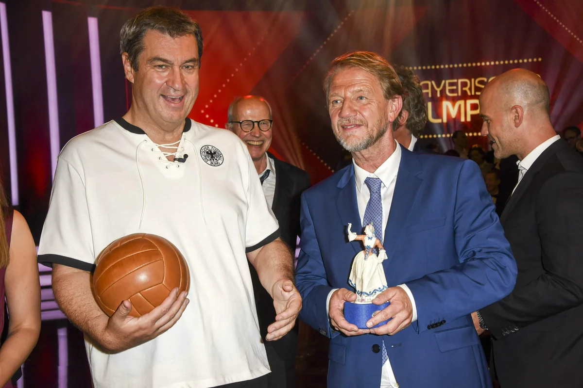 Selbstverständlich geht Söder auch zu Lanz und Maischberger, und inzwischen hat er sogar seinen eigenen Podcast, in dem er sich mit Prominenten unterhält. Überhaupt – die Prominenten. An ihrer Seite zeigt er sich gern. Oder besser gesagt: Er zeigt sie gern an seiner Seite. In der Filmbranche erinnern sich noch manche nicht ohne eine Portion Fremdscham an die Verleihung des Bayerischen Filmpreises im vergangenen Jahr. An den Moment, als Söder bei der Übergabe des Ehrenpreises mit Fußball unterm Arm und im kompletten Fußballoutfit von 1954 auf die Bühne sprang. Der eigentliche Preisträger, der zum Statisten verdammte Sönke Wortmann, stand daneben und schaute mit versteinerter Miene zu. Auch das gehört zur großen Söder-Show. Dass ihm nichts, aber auch gar nichts peinlich ist.