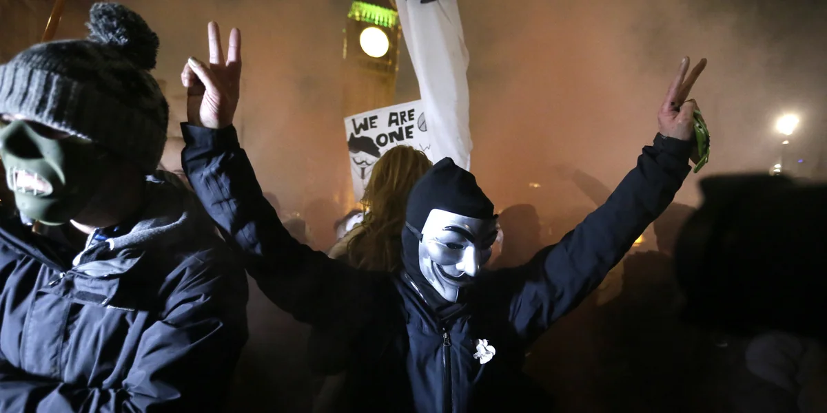 Die Aktivisten von Anonymous hingegen tragen die Maske mit dem Konterfei von Fawkes als ein Symbol ihrer Protestbewegung.