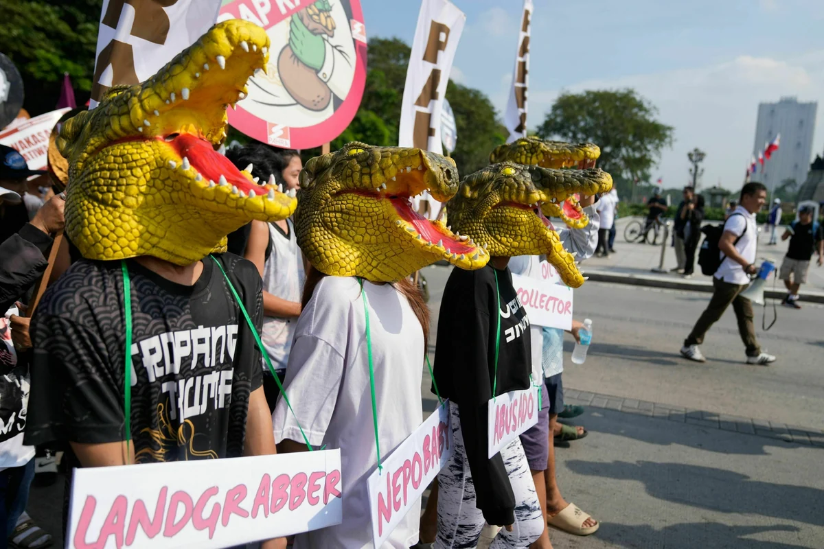 Demonstranten in Krokodilsmasken haben am Sonntag in Manila die Massendemonstration „Billionen Peso Marsch“ gegen Korruption angeführt. Die Krokodile als Symbole für die gefrässige Gier einer korrupten Elite sollten Übel wie Landraub oder Nepo Babys – luxusverliebte Sprösslinge reicher Eltern – darstellen. Zehntausende Menschen waren in Manila und anderen Städten dem Demoaufruf von Gewerkschaften, linken Parteien, Bürgerrechtlern und Jugendorganisationen mit Unterstützung der mächtigen katholischen Kirche gefolgt.