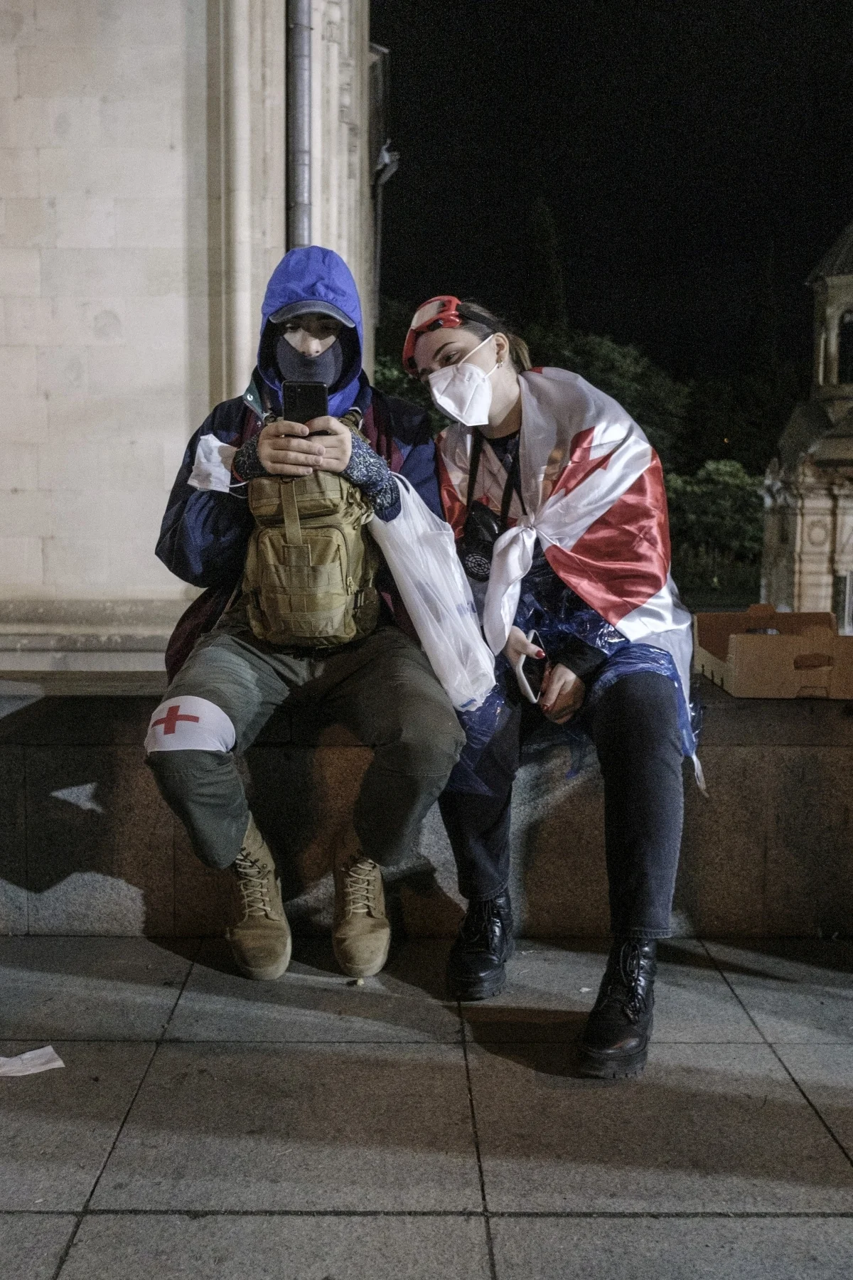 Wie Luka Potschchua, ein 18-jähriger Student. Er geht oft mit seinem Vater, dem 47-jährigen Batscho, zu den Demos. Luka hat sich eine georgische Flagge über die Schultern gehängt, sein Vater hat eine EU-Flagge dabei. Beide sind mit Gasmasken ausgestattet und auf einen möglichen Polizeieingriff vorbereitet. „Anfangs waren wir nur gegen das Gesetz, jetzt sind wir gegen die Regierung. Wir werden diese Gewalt nicht dulden“, sagt Luka. Und sein Vater ergänzt: „Dieser Protest ist eine ganz natürliche Reaktion. Doch „Agenten-Gesetz“ hin oder her, der Georgische Traum wird verlieren.“