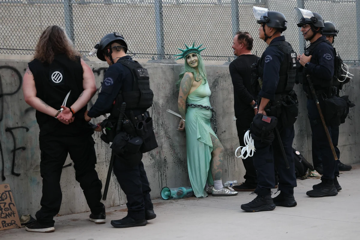 Fotos von den Demonstrationen, die in so ziemlich allen US-Großstädten ausgetragen wurden, zeigen Menschenmassen, viele Teilnehmer kamen verkleidet und mit selbstgemachten Plakaten. Neben US-Flaggen waren auch viele iranische und ukrainische Fahnen in der Menge zu sehen.
