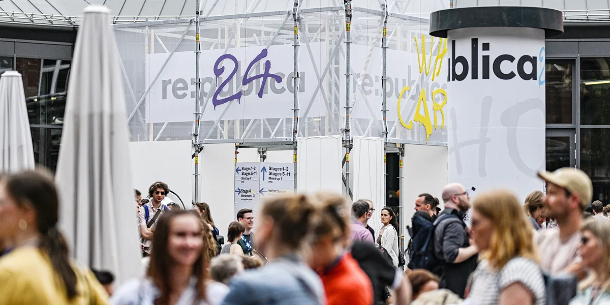 Schon bei der Anreise in der U-Bahn sieht man Leute in Anzügen und Sommerkleidern, alle mit bunten Festivalbändchen, „re:publica 24“ steht drauf. Sie steigen am Gleisdreieck aus, 50 Meter weiter öffnen die riesigen Hallen der Station Berlin ihre Pforten. Die Medienkonferenz re:publica hat begonnen.