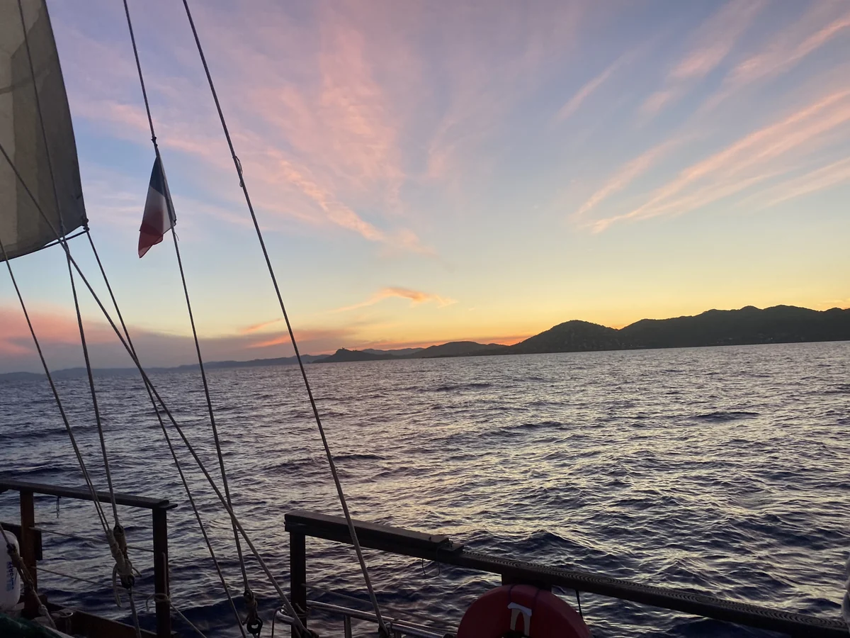 Manche kletterten in den Mast. Andere tauchten nachts im fluoreszierenden Meer oder sahen Manta-Rochen, die aus dem Meer sprangen. Ein Stachelrochen grüßte das Boot, ein Mondfisch begleitete uns. Wir tranken das Wasser des mare nostrum, nachdem es durch die Entsalzungsanlage gelaufen war. Wir sahen in kaum bekannten Buchten unter Wasser eine Natur, die es im Mittelmeer kaum noch gibt, mit riesigen Zackenbarschen und weiten Seegraswiesen. Und doch begegneten uns wenig weiter die Kreuzer der französischen Marine in ihrem Manövergebiet, das im Nationalpark liegt.