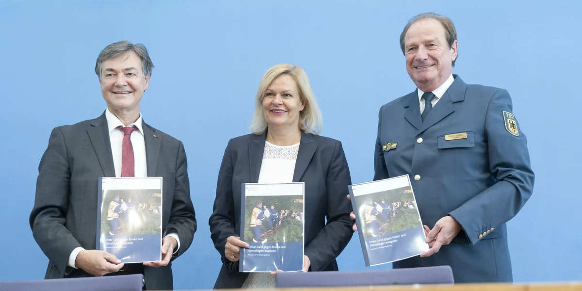Zudem werde man mehrere Notfallzeltstädte für je bis zu 5.000 Menschen anschaffen, verspricht Faeser. Auch treibe man den bundesweiten Wiederaufbau von Sirenen voran, deren Abbau ein „großes Versäumnis“ gewesen sei. Investiert werde in den Cellbroadcast, mit dem Warnmeldungen auf Handys verschickt werden können, und in die Warnapp „Nina“, die ebenfalls Notfallmeldungen aussendet.