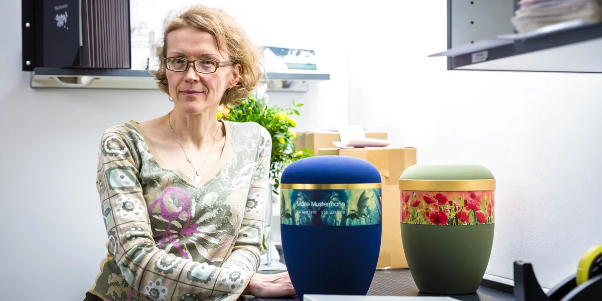Christiane Rietz ist eine von ihnen. Die zierliche 50-Jährige sitzt im Büro der Abteilung „Trauerdruck“. Einladungen, Dankeskärtchen und Urnenbeschriftungen werden hier produziert. Auf einem Tisch, neben den Musterurnen und halbfertigen Bestellungen, vertrocknet der Blumenstrauß von der Verleihung des Inklusionspreises. Der Blick aus dem Fenster geht in den Hof mit den Leichenwagen. „Am Anfang dachte ich: Auweia, ist das traurig, immer mit dem Tod zu tun zu haben. Gerade für mich …“, sagt Rietz. Seit Kindestagen sind depressive Schübe ihre Begleiter, in engen, lauten Räumen, bei zu viel Druck sei sie schnell überreizt. „Den Berliner Arbeitsmarkt habe ich als sehr hart empfunden“, sagt Rietz. Eine Zeitlang habe es jeweils mit einem Job funktioniert, „aber immer auf meine Kosten“.