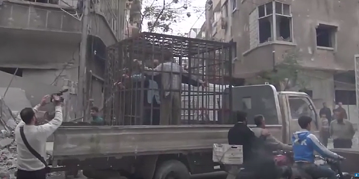 Die oppositionsnahe Syrische Beobachtungsstelle für Menschenrechte machte die einflussreiche Gruppe Dschaisch al-Islam für die Käfig-Aktion verantwortlich. Die Gruppe wird als die wichtigste Rebellengruppe in der Hauptstadtregion angesehen. Die Angaben der Beobachtungsstelle sind von unabhängiger Seite kaum zu überprüfen.