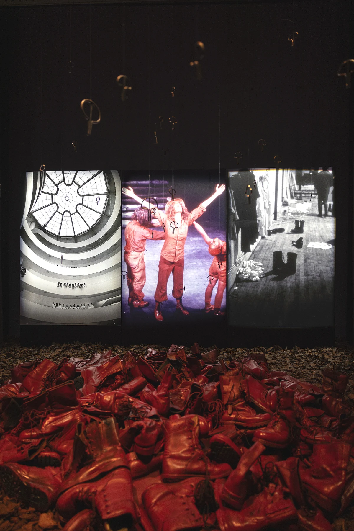Eine der weiteren frühen Arbeiten ist die dreiteilige, ortsspezifische Performance „Juice: a theatre cantata in three installations“ von 1969, die im Laufe eines Monats dreimal an verschiedenen Orten aufgeführt wurde: im New Yorker Guggenheim Museum mit mehr als 100 Darstellenden, in einem Theater und in ihrem Loft. Die feministische Arbeit der damals 26-Jährigen, mit der Metapher von Menstruationsblut und Performerinnen in roten Kampfstiefeln, erforschte die Verdichtung von Raum und Publikum, sich immer näherkommend, ohne Ausweichmöglichkeit.