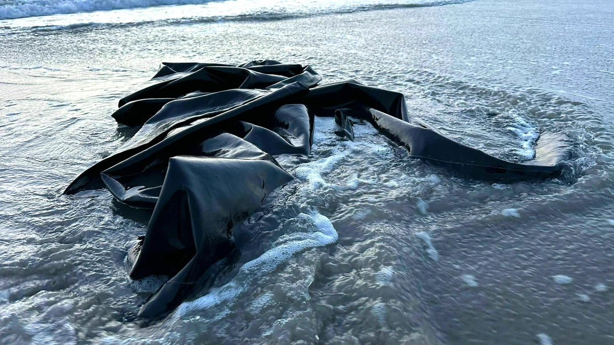 Im Sand davor enden mehrere Spuren der strandtauglichen Fahrzeuge, welche die Polizei bei diesen Operationen einsetzt. Zwischen zurückgelassenen Kleidungsstücken und Essensverpackungen finden sich zwei Schubkarren-Schläuche, offenbar als Ersatz für eine Schwimmweste gedacht. Im Sand liegen mehrere abgefeuerte Tränengaskartuschen.