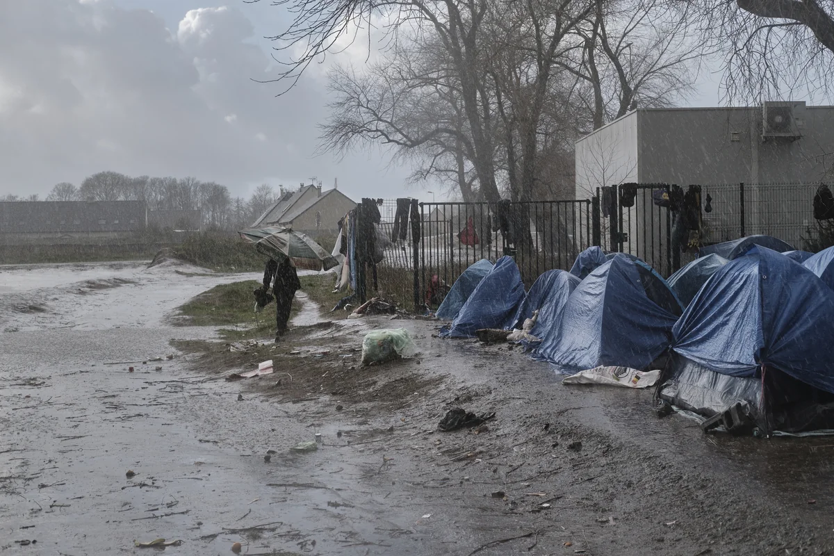 Einer dieser Orte liegt im äußersten Osten von Calais, am Ende der kilometerlangen Rue du Beau Marais. Direkt dahinter beginnt das Dorf Marck, bekannt für seine Lkw-Parkplätze. Etwa 500 Sudaner haben ihre winzigen Zelte hier aufgeschlagen, entlang eines Zauns und in einem Wäldchen, jenseits einer Ansammlung von Pfützen, die sich allmählich in eine Seenplatte verwandeln. Unter den Geflüchteten am Kanal waren die Sudaner schon immer die Elendesten der Elenden. Sie versuchen bis heute, England auf die alte Tour zu erreichen – in, auf oder unter einem Lastwagen. Ohne teure Schlepper, versteht sich.