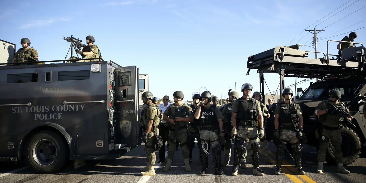 1990 genehmigte der Kongress dem Pentagon, der Polizei überschüssiges Material zur Bekämpfung der Drogenkriminalität zu geben. Später wurde dies auf die Terrorbekämpfung ausgeweitet. Aus Sicht der Polizei trägt die militärische Ausrüstung zum Schutz der Beamten bei. Ob es klug oder doch übertrieben sei, „das Zeug zu nutzen und vielleicht wie Soldaten aus dem Irak auszusehen?“, fragt Bill McSweeney, Leiter der Sheriff-Behörde im Bezirk Los Angeles. „Ich würde allgemein sagen, dass es klug ist. Wenn man das jedes Mal macht, wenn ein Kerl einen ungedeckten Scheck ausstellt, wird es natürlich extrem.“