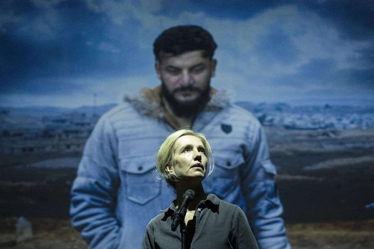 Und so macht dieser intelligente, aufwühlende Abend mit seiner herausragend präzise spielenden Hauptdarstellerin Fragen auf, die weit über Medienkritik hinausgehen. Bedrückende Fragen von Azad Hassan. Er kommt nicht über die johlende Menge hinweg, die sich freut, als ihm die Hand abgehackt wird. Über die Brutalität im nahen Umfeld. Aber auch Fragen wie: Brauchen wir Bilder, etwa aus Gaza, um Kriege zu beenden? Wer hat die Hoheit über diese Bilder? Fragen, die schon die Fotografie-Ikone Susan Sontag gestellt hat, die jedoch in Zeiten von Social Media und KI dringlicher werden.