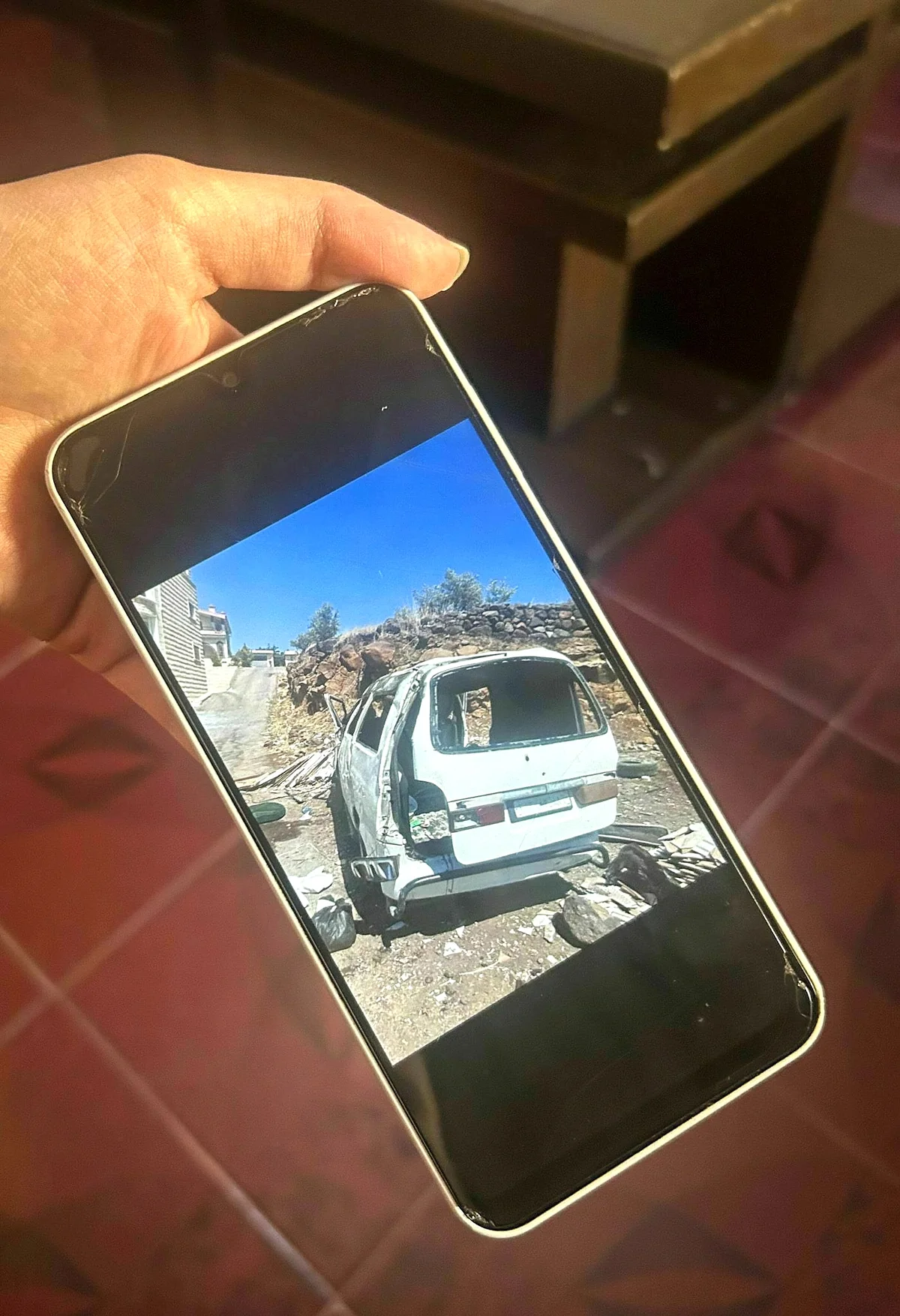 Eine seiner Schwestern zeigt auf ihrem Smartphone das Bild eines lädierten, weißen Minivans, dem die Scheiben fehlen. Nachdem sie sich von ihrem Dorf bis nach Suweida-Stadt durchgeschlagen hatten, um mit dem Van aus der gleichnamigen Provinz zu fliehen, seien sie zwischen zwei Checkpoints beschossen worden, erzählt das Mädchen. Ein Onkel und eine Tante sowie zwei weitere Insass:innen seien getötet worden. Auch dieses Mal wären es syrische Sicherheitskräfte gewesen, die das Feuer eröffnet hätten.