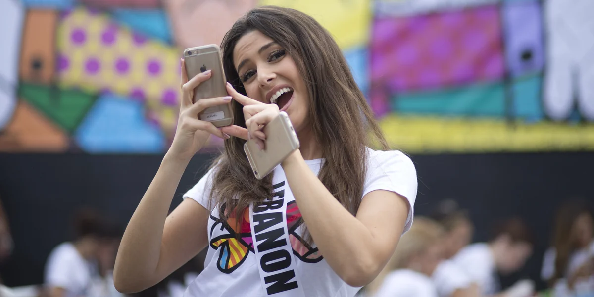 Weil Israel und der Libanon sich im ewigen Kriegszustand befinden und Miss Libanon fürchtet, für das Selfie in ihrer Heimat geächtet zu werden, erklärte sie ihren Twitter-Followern, Miss Israel hätte sich ungefragt ins Bild gedrängt – bezichtigte sie also einer sogenannten Photobomb –, und postete dasselbe Bild noch mal mit abgeschnittenem linken Rand – also ohne die Israelin Doron Matalon.