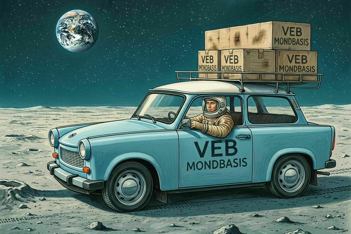 Die europäische Raumfahrtagentur ESA hat angekündigt, in einigen Jahren erstmals einen Europäer auf den Mond zu schicken. Die US-Amerikaner wollen schon vorher (wieder) da sein, um Dauerpräsenz zu zeigen. Auch die Chinesen planen bis 2035 eine eigene Mondstation. Und was machen die schon mit ihrer Eisenbahn überforderten Deutschen? Können sagen: Wir sind schon da. Und zwar mit einer gut ausgebauten DDR-Mondbasis. DDR? Mond? Klingt abgespaced – und ist es auch. Denn die DDR-Mondbasis existiert nur im virtuellen Raum, ist dort aber fest verankert als Anlaufstation für Erdbewohner.