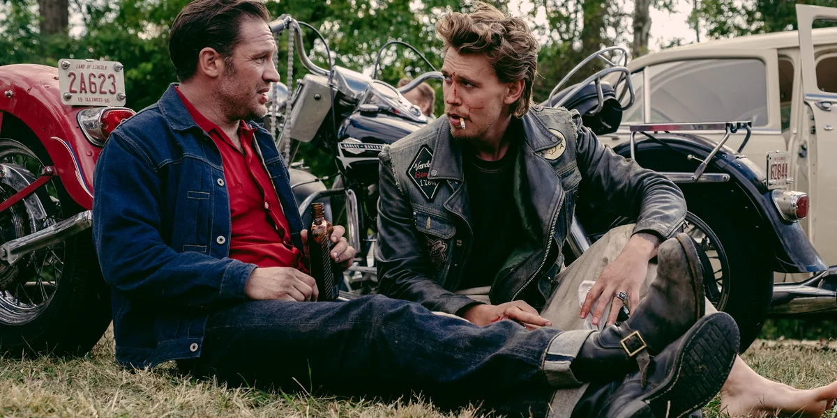 Dafür greift er teils auf reale Figuren aus der Vorlage zurück. Hausfrau Kathy (Jodie Comer) etwa dient als rahmensetzende Erzählerin, die eher zufällig in diese testosteronlastige Welt vordringt. Als sie eine Freundin unwissentlich in besagter Stammkneipe der Biker trifft, ist sie zunächst von ihrer Rohheit abgestoßen, empört über die fehlenden Manieren – aber auch unweigerlich angezogen vom ungeschliffenen Charme des jungen Benny (Austin Butler).
