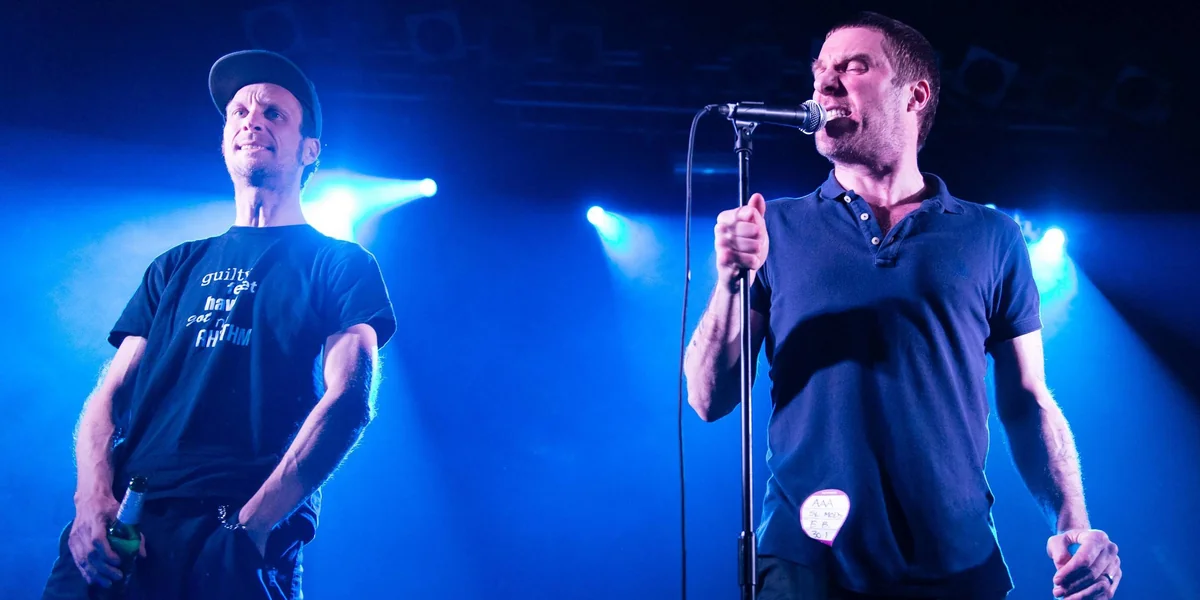 Seit die Sleaford Mods 2014 ihren Durchbruch geschafft haben, hat sich die Arbeitsteilung des Duos nicht groß verändert: Während Andrew Fearn am Laptop stehend auslotet, wie man sich im Rahmen einer Bühnenperformance möglichst wenig anstrengt, bellt Williamson seinen Hochdruck-Sprechgesang über einen minimalistischen LoFi-Sound zwischen Soulsamples- und Postpunk, getrieben von stoischen Bassläufen und Drum-Machine-Bollern.