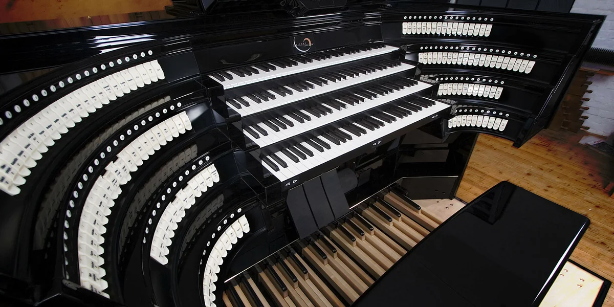Außergewöhnlich ist auch die Geschichte der Orgel dieses Abends, die eigentlich aus dem Ruhrgebiet stammt. Die Stadt Gelsenkirchen leistete sich Anfang der 1920er-Jahre einen großen Mehrzweck-Gebäudekomplex – den Hans-Sachs-Bau – im Stil des damals hochmodernen Backsteinexpressionismus. Verwaltung, Läden, Bücherei, Büros, ein Café und ein 1.600 Menschen fassender Konzertsaal in einem Gebäude – auch dies war für die damalige Zeit revolutionär.