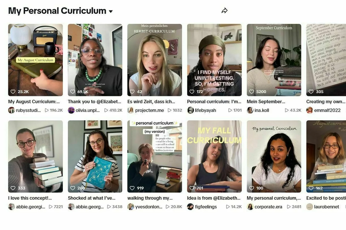 Endlich ein Trend, der den Kopf statt den Körper in den Mittelpunkt stellt! Nachdem dieses Jahr vor allem Tendenzen wie „SkinnyTok“ oder „Messy Girl“ dominierten, feiert Social Media nun „My personal curriculum“.