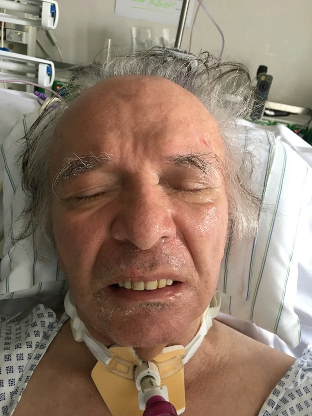 Ergrautes Haar, buschige Augenbrauen und eine gute Figur für einen Senior zwischen 60 und 70, durchtrainiert. Sie haben ihn auf der Intensivstation nun in ein Doppelzimmer verlegt. Damit er nicht zu einsam ist. Die Stille um ihn bleibt. Die Klinik wünscht keinen Besuch, keine Gespräche mit Ärzten oder Pflegern.