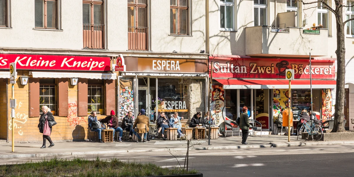 Stattdessen gibt es seit gut 10 Jahren einen regen Zuzug von besser betuchten Bio-Deutschen – Bio im Sinne von Biografie – und „westlichen“ Ausländern aus der EU, Israel, den beiden Amerikas, die ebenfalls die Gegend für sich entdeckt haben. Für sie und durch sie ist in den Nebenstraßen der Sonnenallee eine üppige Infrastruktur an Szenecafés und -bars, Platten- und Secondhandläden, Büchereien und Modegeschäften entstanden.