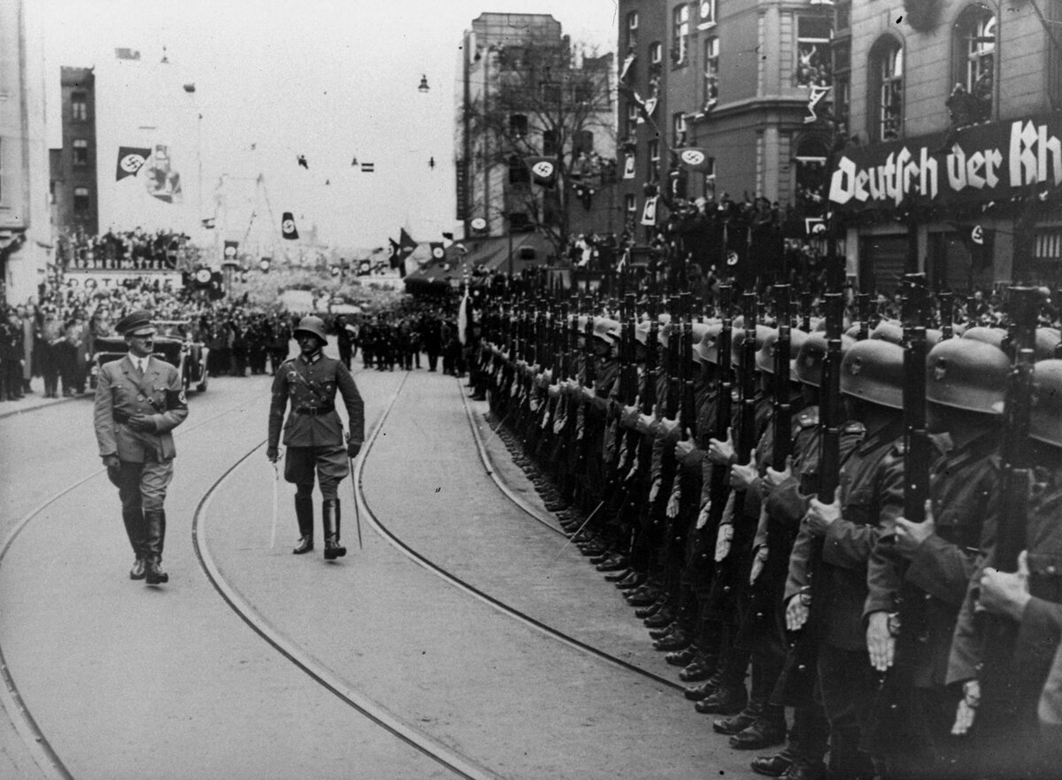 Die Rückkehr der deutschen Armee ins Rheinland war eines der Herzensanliegen der Nazis. Lange genug hatten die Völkischen die Besatzung durch alliierte Truppen dort gegeißelt und ein Bild von lüsternen schwarzen Soldaten aus den französischen Kolonien fabriziert, die deutschen Frauen nachstellen würden, die „schwarze Schmach“ genannt. Die Alliierten waren 1930 abgezogen, doch die Deutschen nicht nachgerückt.