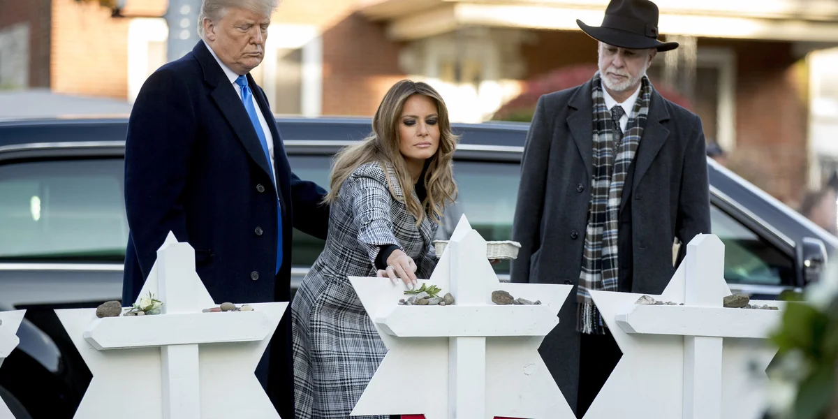 Bei ihrem etwa 20-minütigen Besuch zündeten der Präsident und die First Lady Kerzen zu Ehren der Todesopfer an. Anschließend legten sie an der provisorischen Gedenkstätte außerhalb des Gotteshauses jeweils eine weiße Blume und einen kleinen Stein vor den Sternen nieder, die an die elf Anschlagsopfer vom Samstag erinnern. Die Niederlegung von kleinen Steinen auf Gräbern ist eine jüdische Tradition.