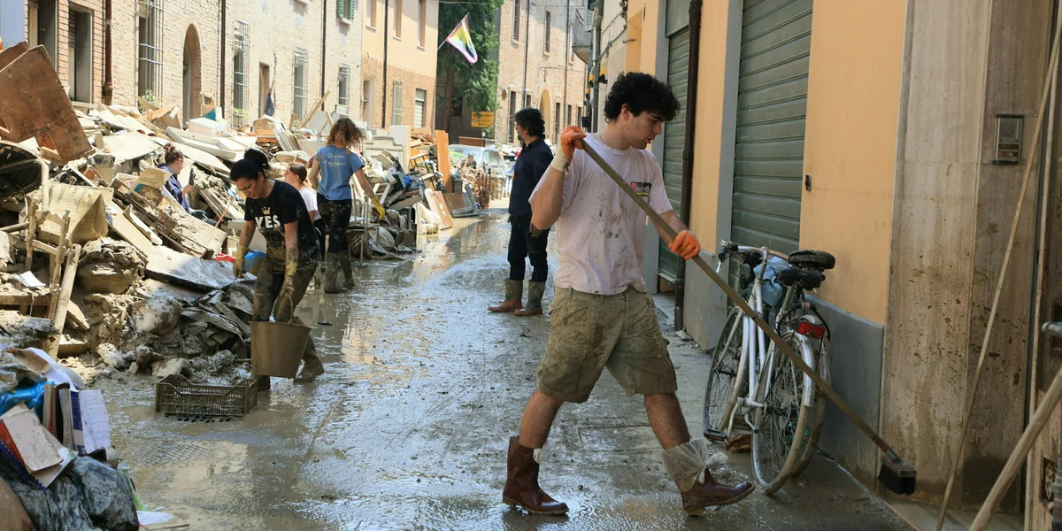 „Wir haben beschlossen, alles andere für einen Moment beiseitezulegen, haben unsere Stiefel angezogen, unsere Schaufeln geschnappt und der Bevölkerung geholfen“, sagt Simoni. Videos von Freiwilligen, die in langen Menschenketten eimerweise Schlamm aus den Wohnungen tragen, gingen viral, schmutzige Gummistiefel wurden zum Symbol der Solidarität. Lachende junge Leute in schlammbespritzer Kleidung zierten auch die Social Media Posts des Regionspräsidenten Bonaccini. Schnell war für sie der Begriff der „Engel des Schlamms“ geprägt. Simoni sagt: „Nennt uns nicht so, wir sind losgezogen, um der Bevölkerung zu helfen. Aber jetzt fordern wir eine radikale Änderung der Politik, die die Gebiete der Emilia Romagna verwaltet.“