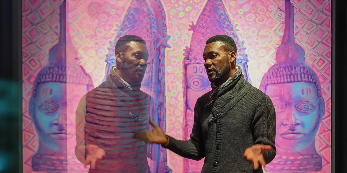Nach dem Beschluss zur Rückgabe der Bronzen im Sommer hat das Museum nicht aufgehört zu fragen. Diesmal hat es dem Künstler und Kurator Enotie Paul Ogbebor das Feld überlassen. Ogbebor hat neben der Installation von Ogboh nur fünf der Bronzen ausgewählt, die bald zurück gehen, vielleicht aber auch noch eine Weile als Leihgabe bleiben könnten.