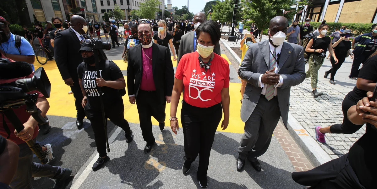 Die 16th Street NW, die in Washington auf das Weiße Haus zuläuft, hat einen neuen Namen: Ein Abschnitt heißt nun „Black Lives Matter Plaza“. Muriel Bowser, die schwarze Bürgermeisterin der US-Bundeshauptstadt, ließ die Parole am Freitag in riesigen gelben Lettern auf den Asphalt pinseln. Am Samstag versammelte sich dort eine gewaltige Schar DemonstrantInnen, um einen grundlegenden Wandel der Polizei und ihres Umgangs vor allem mit AfroamerikanerInnen zu fordern.