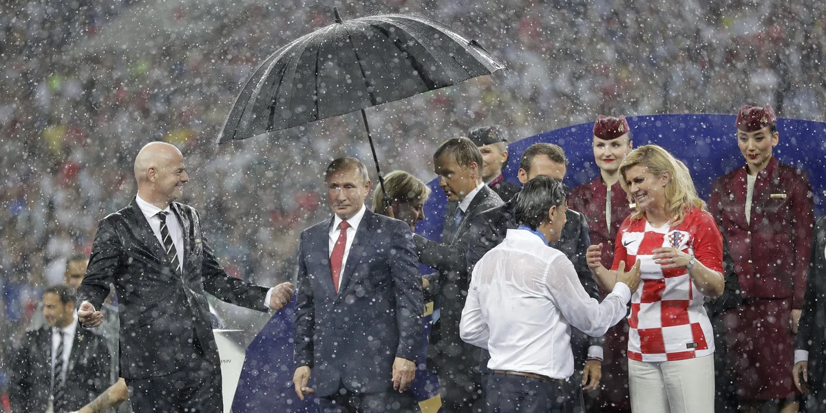 So macht das einer, der immer zeigen will, wer der Herr im Haus ist. Dass er bei der Zeremonie im Platzregen, dann auch noch der einzige war, der unter einem Schirm stand, während die Staatschefs aus Frankreich und Kroatien bald pitschnass waren, passte zu diesem unwürdigen Auftritt. Ganz zum Schluss hat die WM noch einmal ihre hässliche Fratze gezeigt. Auch dieses Bild wird bleiben.