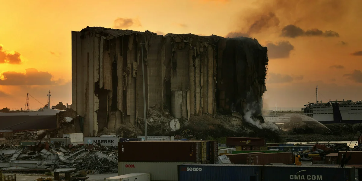 Im Beiruter Hafen brennt seit zwei Wochen ein Weizenlager, nun droht der Einsturz. Der Regierung wird vorgeworfen, ihr komme das Feuer gerade recht.