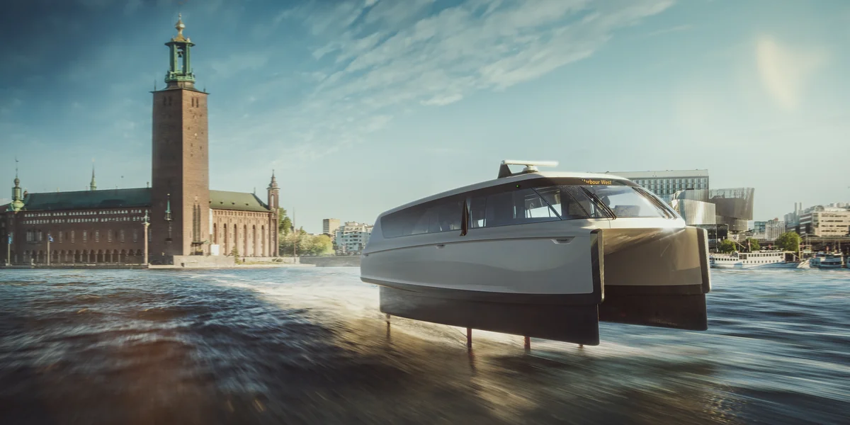 Nebenan, vor dem kleinen Hafen von Gåshaga im Osten von Stockholm, zischt eine weiße Motoryacht übers Wasser: Acht Meter lang, mit bequemen Sitzen und der Aura des Jetset-Luxus. Solange sie im Wasser dümpelte, sah die „C-8 Polestar“ aus wie eines der vielen Luxusboote, in das reiche Kapitäne eine halbe Million Dollar investieren. Aber wenn sie über das Wasser fliegt, soll sie etwas ganz anderes darstellen: die Zukunft des Wasserverkehrs in den Städten, schnell, bequem, cool, CO₂-frei und praktisch lautlos.