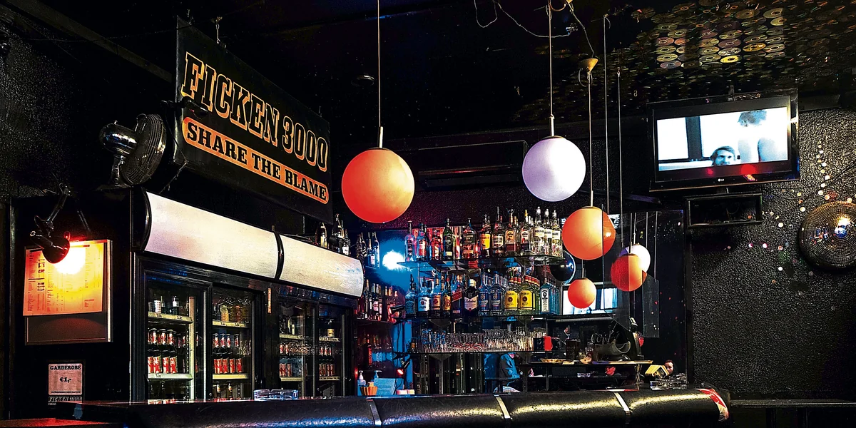 Aber Frank hört mir nicht zu. Er muss ein paar Personen, die „leider keinen Akku haben“, um ihr Corona-Testergebnis zu zeigen, abweisen. Ich sehe mich um. Die ersten Gäste drängen durch die Tür. Die Bildschirme an den Wänden zeigen zu 80er-Jahre-Hits Schwulenpornos in Schwarz-Weiß. Sie gehören zum Grundinventar des Ladens, wie das riesige Ficken3000-Logo hinter der Bar. Heute ist es mit Girlanden überhängt.