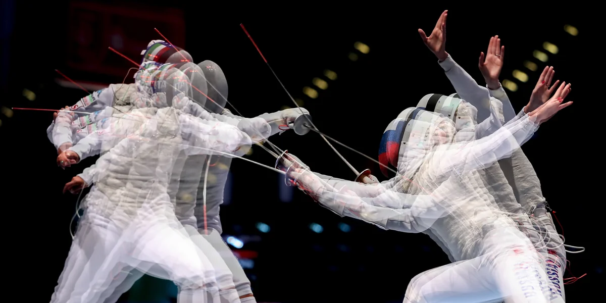 Der Junge öffnet die Tür. Dahinter die Kampfhalle: Weiße Gestalten stürmen aufeinander zu. Auf vier Bahnen trampeln Füße, scheppert Metall – je nach Disziplin Säbel, Degen oder Florette. Die Athleten schwingen und stechen mit solcher Geschwindigkeit, dass selbst die großflächigen Leinwände am Hallenrand mit ihren Zeitlupe-Wiederholungen kaum weiterhelfen. Nach jeder erfolgreichen Attacke fiepen Punktezählmaschinen. Das Geräusch setzt sich wie ein arhythmisch pulsierender Tinnitus im Ohr fest.