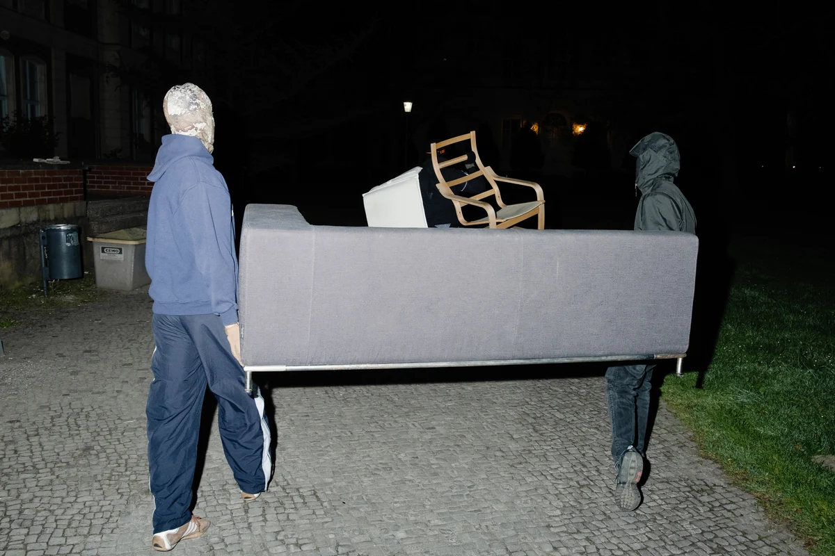 Eine Gruppe junger Männer möbliert nachts das Stadtbild mit Möbeln vom Sperrmüll. Mit der Aktion protestieren sie gegen die hohen Mieten in Potsdam.