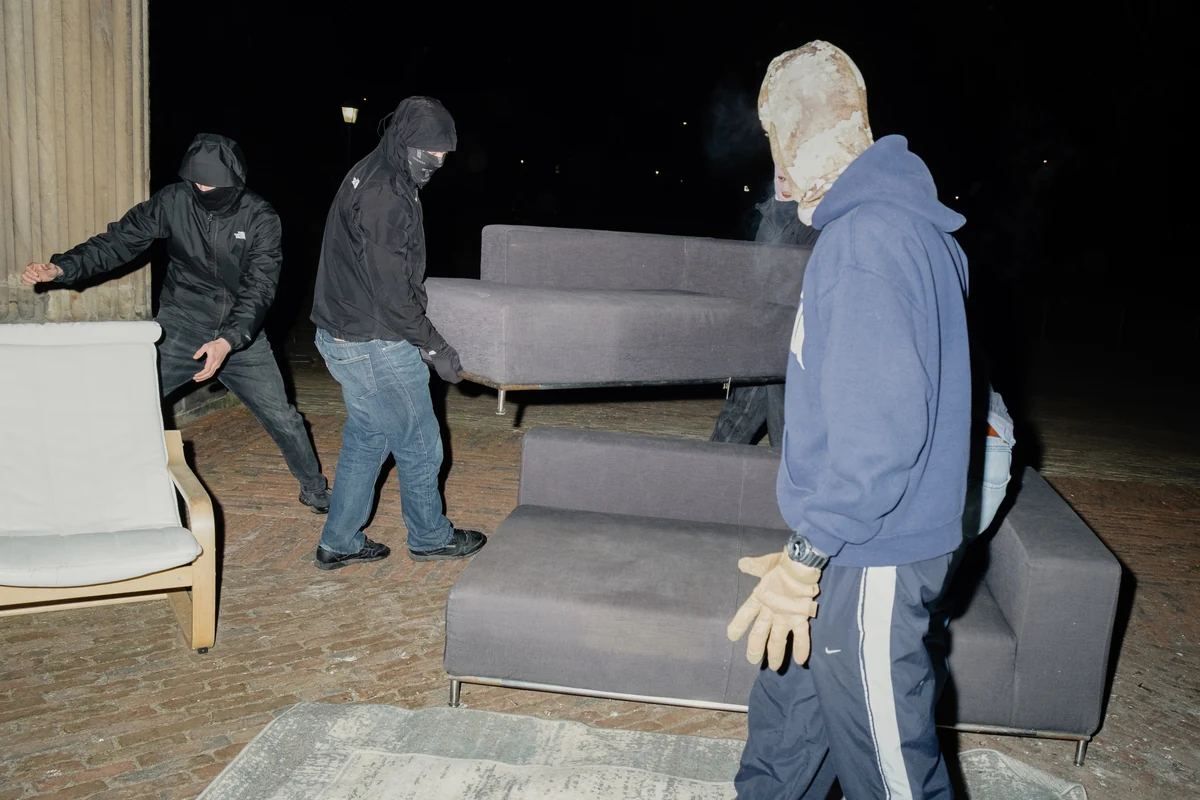 Angefangen hat es als Gag. Die Jungs fanden an der Straße ein altes Sofa und schleppten es aus Spaß unters Jägertor. Eine Meme-Seite griff das Bild auf: „Zentrale Lage, teilweise regengeschützt, keine Küche, kein Bad – 1.000 € kalt.“ Der Post ging viral und die Jungs merkten, dass man mit alten Möbeln Aufmerksamkeit generieren kann. Seitdem durchforsten sie Kleinanzeigen nach Gratismöbeln oder sammeln ein, was andere an die Straße stellen, um es nachts mit politischer Botschaft wieder aufzubauen.