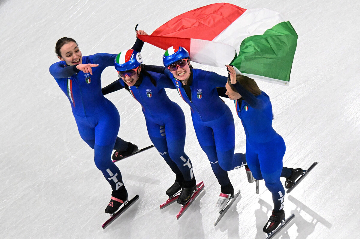 In der wurde fest mit einer italienischen Medaille gerechnet. Regierungschefin Giorgia Meloni hatte sich eingefunden und wurde von Giovanni Malagò, dem Chef der Organisationsstiftung der Spiele, auf diesen Weiheabend des italienischen Sports vorbereitet. Dessen Hauptdarstellerin war Arianna Fontana. Die hatte sich zusammen mit Chiara Betti, Elisa Confortola und Arianna Sighel für das Staffelfinale der besten vier Quartette qualifiziert und lief tatsächlich als zweite hinter den Südkoreanerinnen über den Zielstrich. Es war ihre 14. olympische Medaille. Eine mehr als der bisherige Rekordhalter, der Fechter Edoardo Mangiarotti, der zwischen 1936 und 1960 13 Edelmetallplaketten gesammelt hatte.