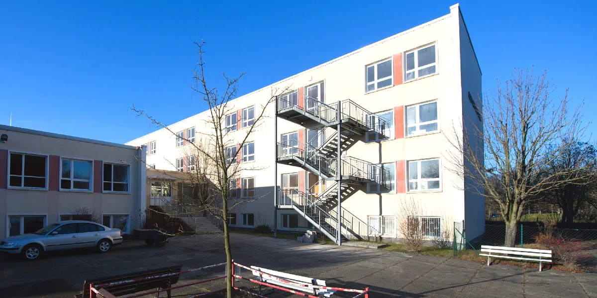 Auf dem Platz, der früher der Schulhof war, sitzen heute junge Männer auf den Bänken. Sie beobachten die kleinen Kinder, die auf Fahrrädern umherfahren. Hier, hinter dem schweren, grauen Zaun, der den Platz von der Straße trennt, stehen auch sie unter Beobachtung. Die Unterkunft steht mitten im Stadtzentrum. Drei Monate nach ihrer Eröffnung häufen sich die Drohungen und Angriffe auf die Asylbewerber, tagsüber und in der Nacht.